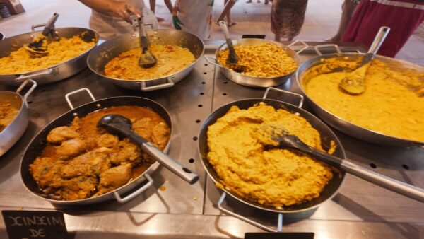 After a short “raft boat” transfer that felt a little overloaded, we landed on Itaparica for a massive buffet lunch. They charge by the kilo (around 139 Reais per kg), so you can try a bit of everything, just watch out for the heat!.